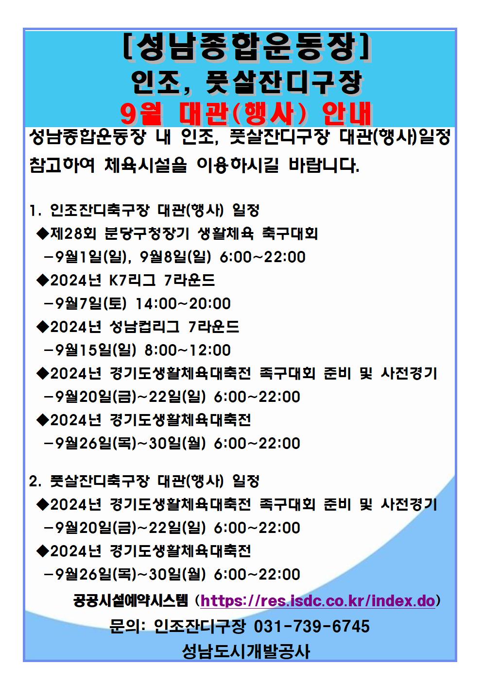 인조잔디구장 및 풋살구장 대관 예약 시 확인부탁드립니다.