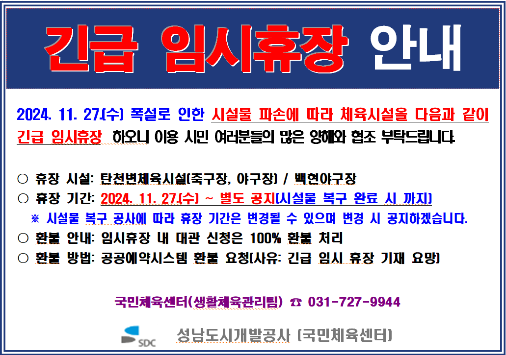 긴급 휴장안내