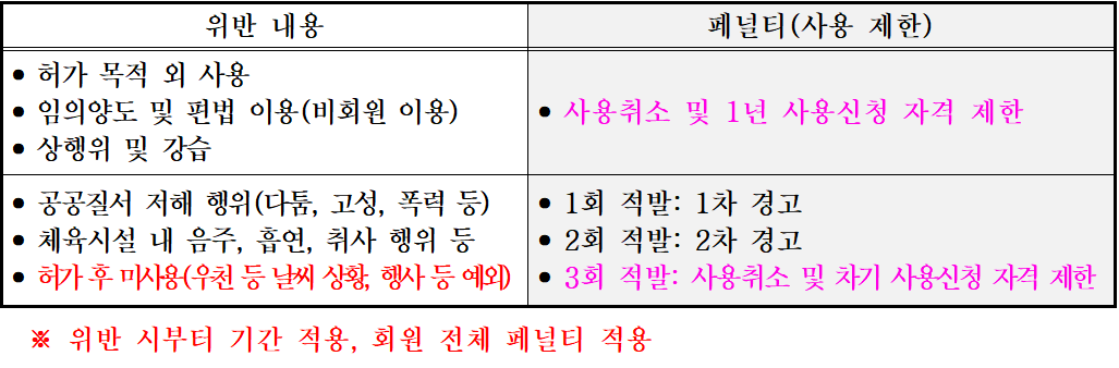 2025년(상반기) 테니스 동호회 정기사용 관련 패널티 안내