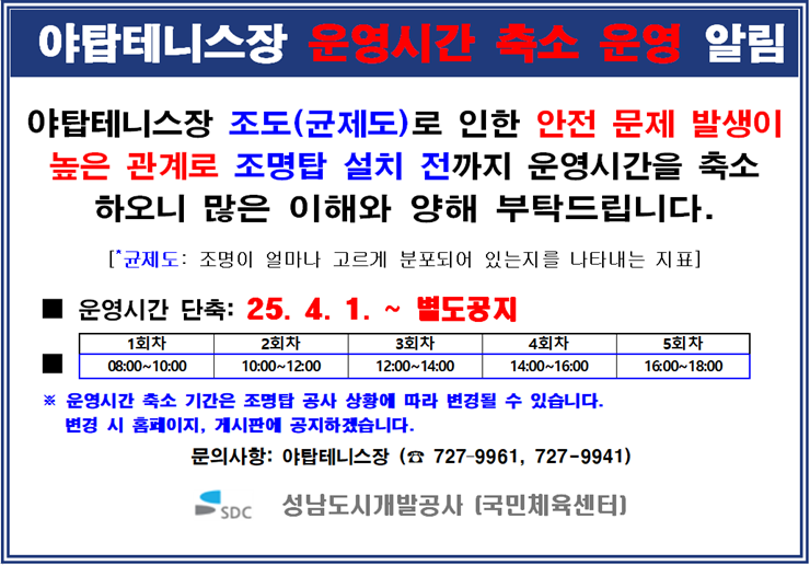 야탑테니스장 운영시간 축소 운영 알림(수정)