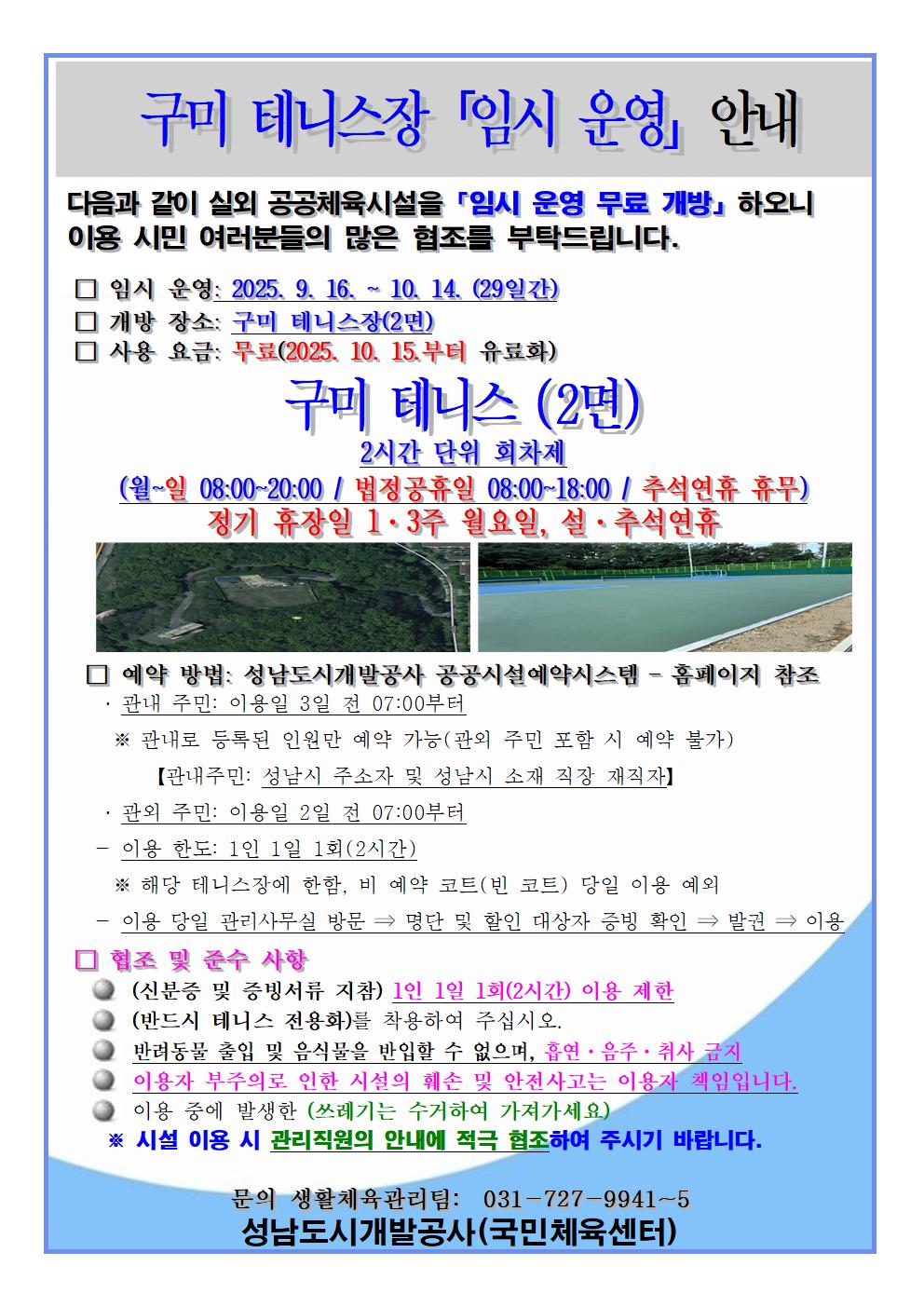 성남종합운동장 인조잔디구장 9월 잔여분 대관일정 알림