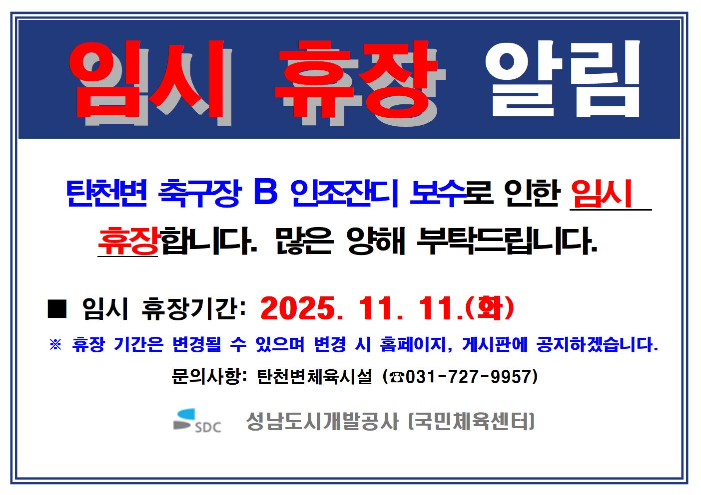 탄천변 B축구장 인조잔디 보수 공사에 따른 사용제한 알림