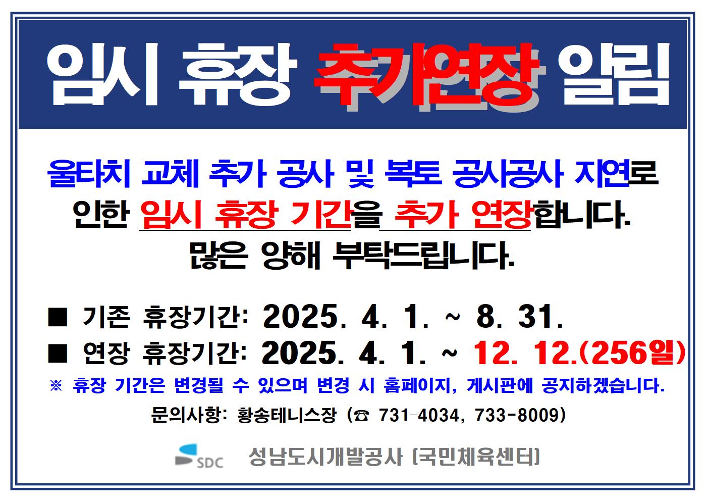 황송테니스장 임시휴장(추가연장)