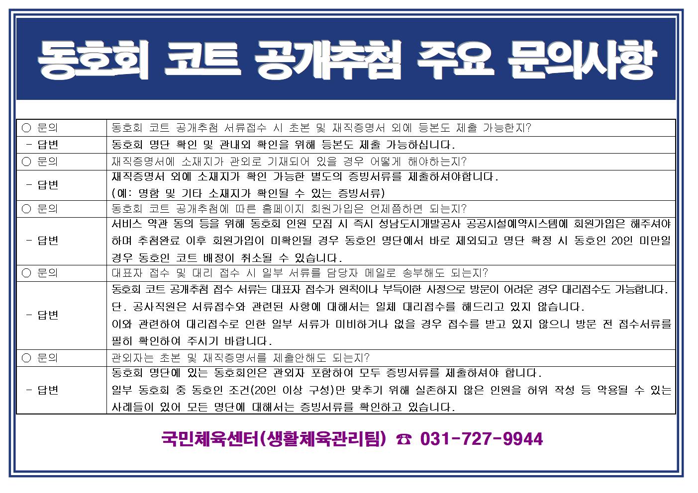 동호회 코트 공개추첨 주요 문의 및 답변사항