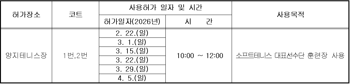 양지테니스장 사용허가(제72회 경기도체육대회 출전 선수단 훈련)